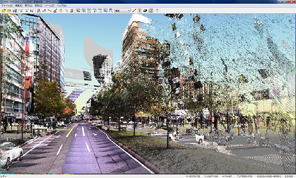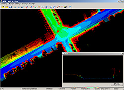 (パスコ製) - 色付き点群を平面投影した写真地図画面と、カメライメージを立体表示した点群を重畳表示させた、画面を使用して観測する3次元図化ソフトです。シェープファイル、ジオデータベース等GISデータの直接編集や任意の位置で地形や地物の断面図を発生させ、高さ情報を取得する事が可能です。