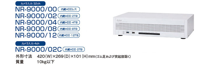 ※1 NR-9000/02Cはカメラ接続最大4台、増設HDD接続非対応、UPSシャットダウン連動非対応です。