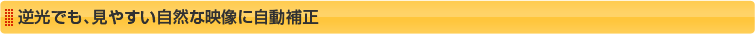 逆光条件での“背景が白飛びして人物が暗くなる”現象を防ぎ、見やすい自然な映像に自動補正します。