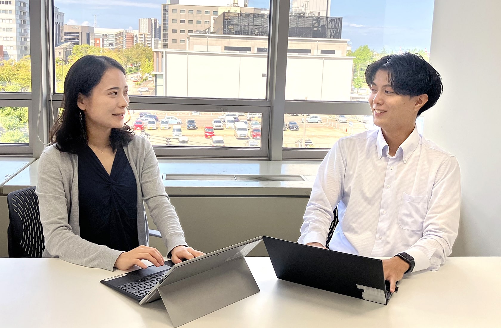 左から、総務部総務課の牧野真子さんと事業推進部企画課の宮浦諒さん