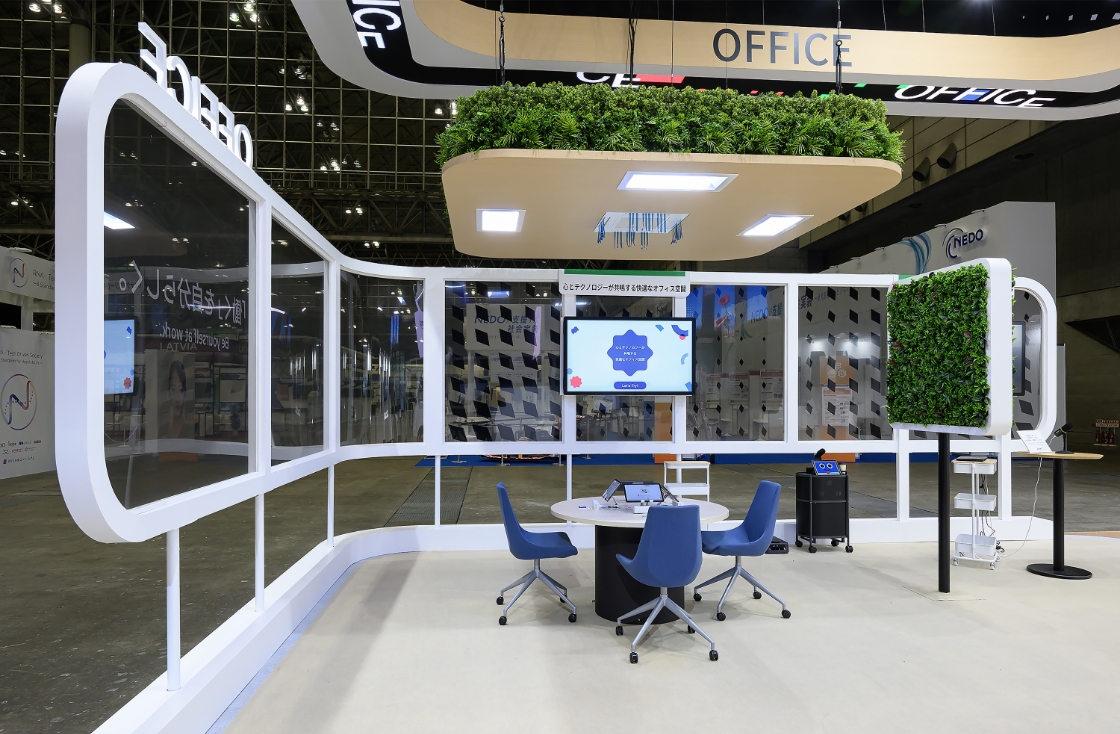 例えば、オフィスエリアで展示した『心とテクノロジーが共鳴するオフィス空間』のデモンストレーションでは、当社の独自センサーで体験者の脈拍情報を測定し、集中度を推定。結果に応じてAIが機器を制御し、一人ひとりにあった最適な空間づくりに貢献します。具体的には、集中度が高かった人にはロボットがコーヒーを届けたり、疲れている人にはリラックスのために照明の色を変えたり、空調機の風を当てて覚醒を促す、といったように、体験者のパフォーマンスをより良くするためのソリューションを提供します。デモンストレーションを通じて、お客様には楽しみながらソリューションの提供価値や先進性を理解いただけたのではないかと思います」(河野さん)
