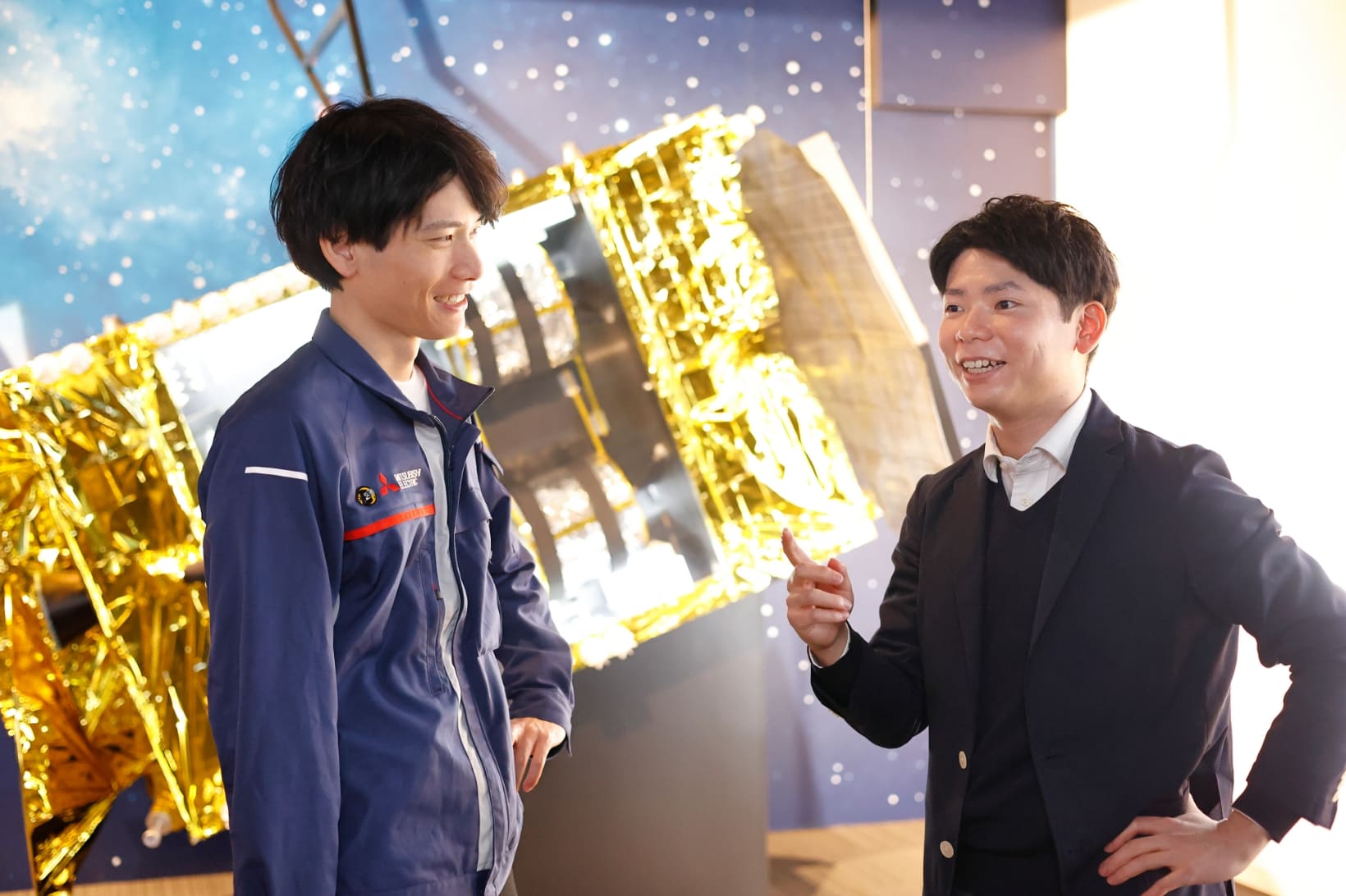 井上:種子島でポスターを配布している時や、見学場でSLIM打ち上げを撮影している時、全国から集まった一般の方々から「応援しています!」「日本の宇宙産業には三菱電機さんは欠かせないですね」と応援の言葉を頂きました。たくさんの方々が私たちの宇宙事業をご存じで、応援して下さっていることを知って、今まで培ってきた三菱電機の宇宙事業の歴史があってこそだなと誇りに思いました。同時にトクのような現場の人や技術者たちにその声を届けたいと思ったんです。一般の方たちの声は届かないだろうから。