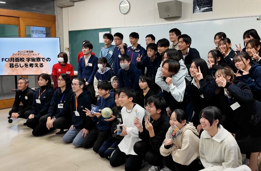 三菱電機は、サッカー日本代表の元監督岡田武史さんが代表取締役会長を務め、愛媛県今治市に本拠地を置くサッカークラブ「FC今治」を運営する株式会社今治.夢スポーツと「ワクワク未来共創パートナー」としてエグゼクティブパートナー契約を結んでいる。スポーツの枠組みを超えた社会創りへ貢献する共創活動の一環として、FC今治高校 里山校を舞台に、「月面での暮らしへの夢と、夢だけで終わらせず未来を実現する力を育むこと」を目的として、生徒たちとID研の「Ticket for LunaCity®」のメンバーが、地球と環境の異なる月面で快適に暮らすためのアイデアを一緒に考えまとめるワークショップを開催した。