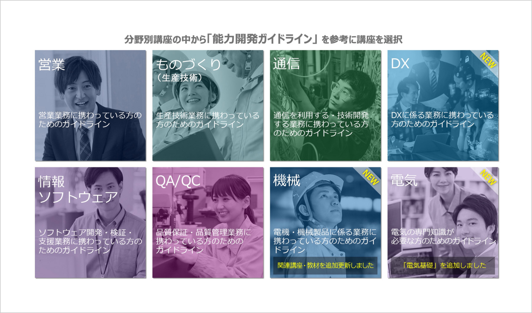 片岸:人財開発センターの社内イントラネットでは、分野ごとに、目指す職務レベルに応じて必要なスキルとそのレベルに到達するための手段を示すガイドラインがあり、ステップごとにおすすめの講座をわかりやすく紹介しています。また、上長の推薦や先輩からのアドバイスを基に講座を選ぶのも1つの方法だと思います。
