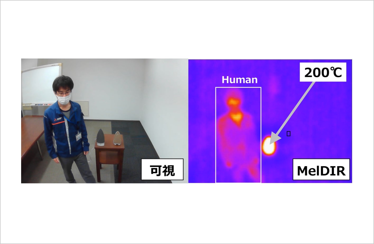 三菱電機高周波光デバイス製作所(以下、波光電)が開発した「MelDIR」は、人や物が放射する熱を検知し、映像で表示する赤外線センサー。高画素化、高温度分解能化により、動きの速い熱源の形状も精度高く把握できるのが特徴だ。