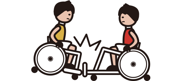 試合中 に「パーン!」と大 きな音 が鳴 ることがあるよ。どうしてかな?正解 タイヤのパンク車 いす同士 のぶつかり合 いで、タイヤがパンクしてしまうことは試合中 によく見 る光景 だよ。1分 以内 にタイヤ交換 をしないといけないので修理 を行 うメカニックの早業 にも注目 だよ! -