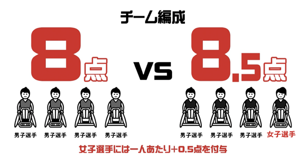 車 いすラグビーのチーム編成 には、ある