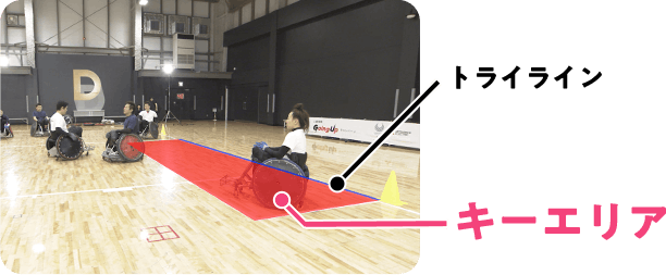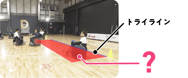 下 の写真 の画像 のトライライン前 の赤色部分 のことを何 という?正解 キーエリアディフェンス(