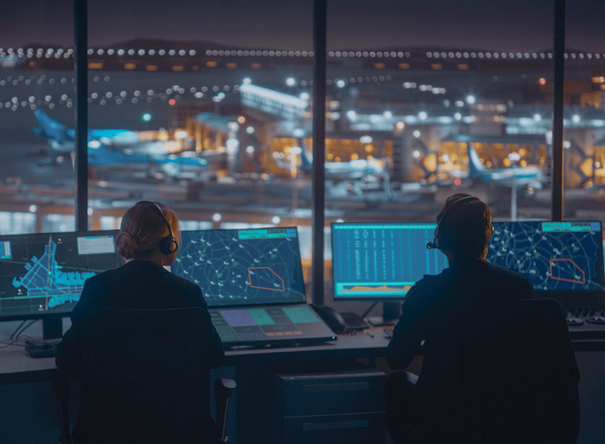 空港では、特に夜間、気象状況、離発着期の混雑状況に応じた航空機管制が必要になります。レーザー光線をつかった空港気象ドップラーライダー」は、見えない風を視覚化すると共に、航空機の離着陸にとって最も危険な風の急激な変化を自動的に検出して警報を発信します。マルチラテレーションシステムや空港面探知レーダー装置は、航空機からのトランスポンダの電波を、空港各所に配置した複数個所の受信機で受信し、航空機の位置を識別するとともに、機体の識別を行います。滑走路や誘導路などの空港の地表面を異動する航空機や、航空機のそのものの胴体や翼を明確に識別し、車両の動きなども監視することで航空機の安全を守っています。