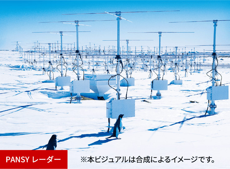 南極上空で起こるオーロラなどの特異な大気現象は、地球環境の変動と密接な関係があるとされています。南極昭和基地に建設された大型大気レーダー「PANSY」は、アンテナ素子を除く全装置を三菱電機が製作。限られた電力量と厳しい自然環境下でも気象現象や大気の動きを正確に観測できるレーダー技術によって、南極大陸の観測的研究を大きく前進させました。