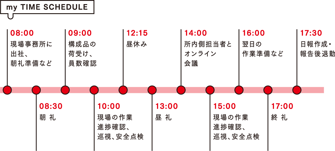 大型重機を使用して巨大な構造物が組み立てられる様子は、やはり何度見ても高揚しますし、緻密に立てた計画通りに工事が進むと努力が報われた気がします。またプラント部門では、中堅若手が中心となり中長期事業戦略を検討するなど、成長というテーマにも一丸となって取り組んでいます。私も入社当時に即戦力になろうと必死だったときに、先輩社員が支えてくれたので、今があります。コミュニケーションも盛んな部門なので、知識面で不安があっても安心して入社してほしいと思います。