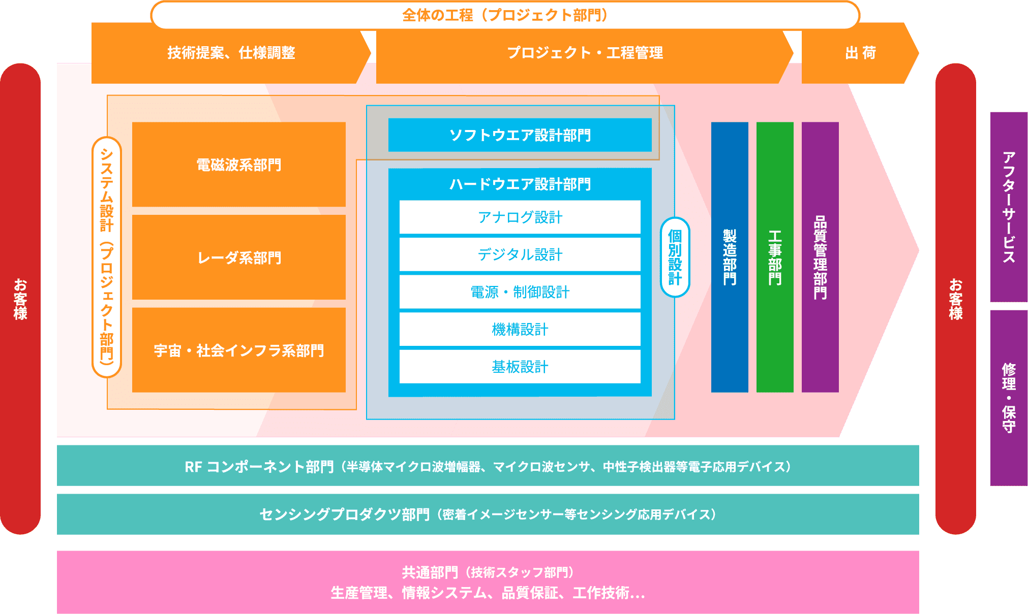 電子通信システム製作所では、多様な職種により幅広い事業展開を支えています。