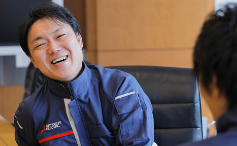 - 2009年に入社し、九州支社に配属される。営業を担当したのち、結婚を機に神奈川支社へ転勤。その後、三度の育児休職を経験。現在は、シーケンサやタッチパネル、ブレーカー、汎用モーターなどの販売を行う神奈川機器営業部で企画業務を担う。
