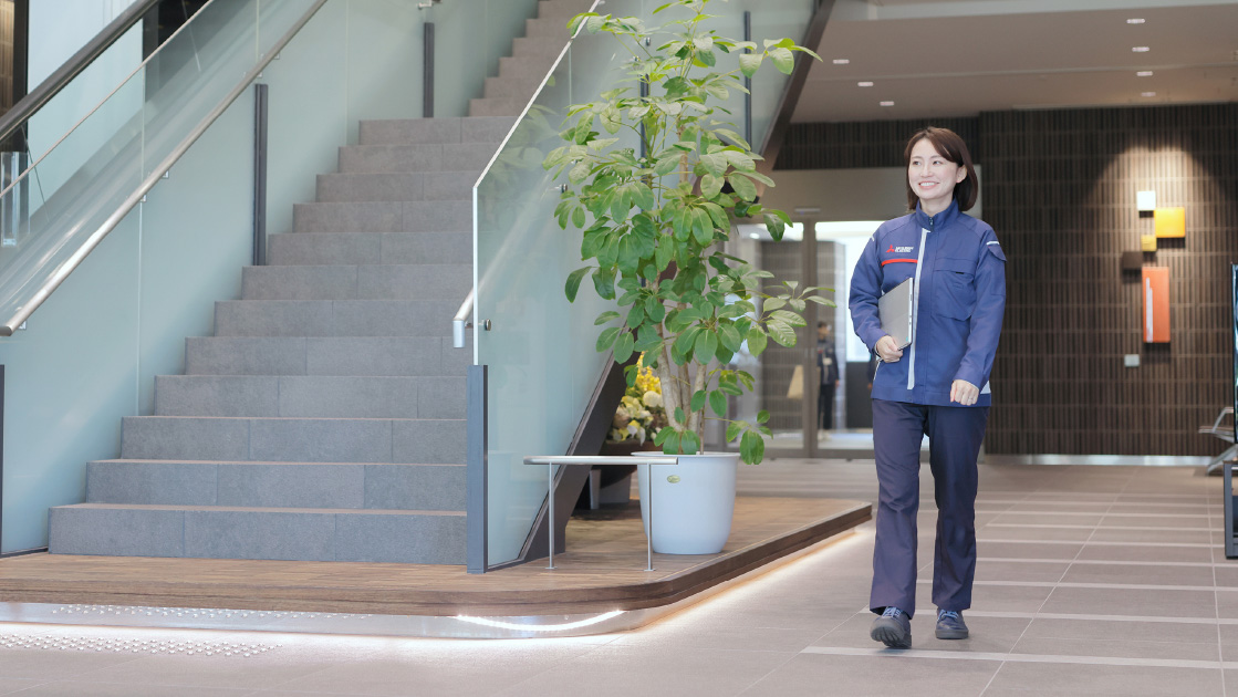 伊丹製作所は、三菱電機交通事業の中核製作所として、快適で信頼できる安全・安定輸送を実現する車両システムの開発・製造を手がけています。ここでは、そんな伊丹製作所で子育てと仕事を両立する松本の1日を紹介します。