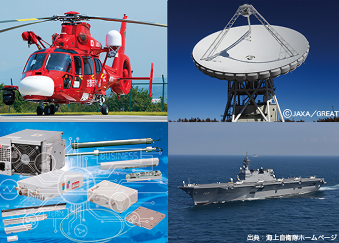 電子戦システム、警戒管制レーダー、衛星通信地球局設備、衛星追跡管制設備、宇宙天文観測設備、気象レーダー、空港気象ドップラーレーダー、航空管制関連システム、密着イメージセンサー等
