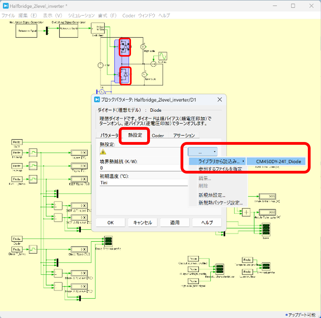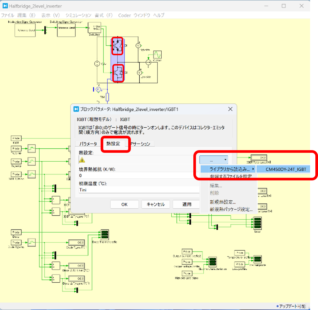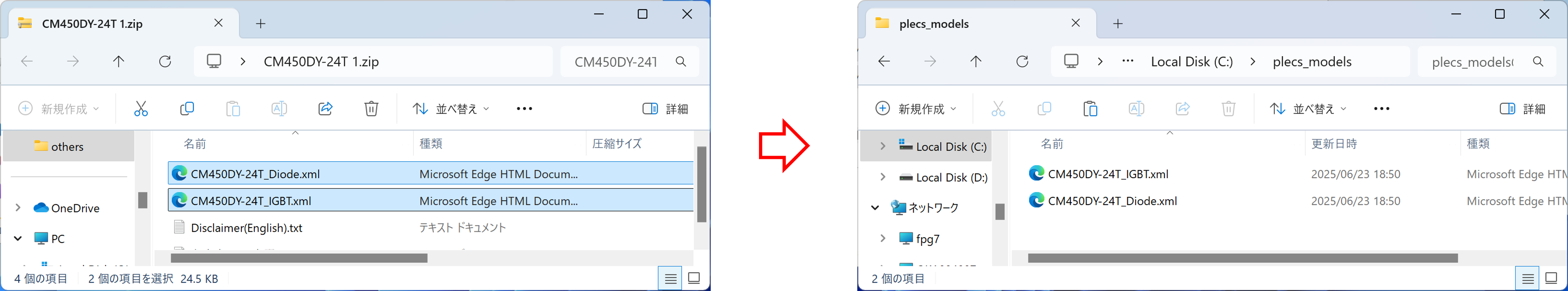・"CM450DY-24T.zip"の"CM450DY-24T_IGBT.xml"および"CM450DY-24T_Diode.xml"を適切なフォルダを