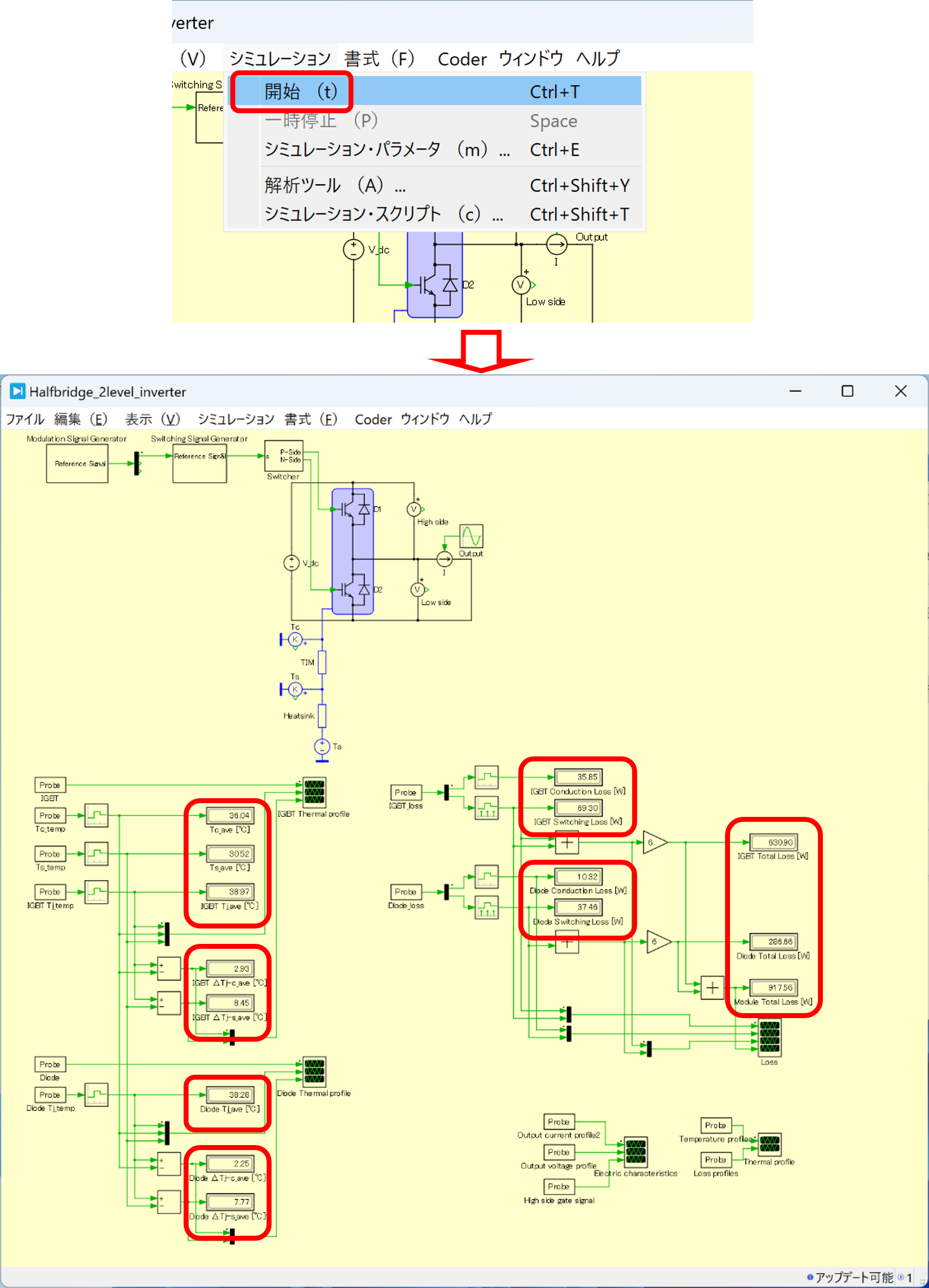 ・"シミュレーション"から"開始"をクリックし、実行する。