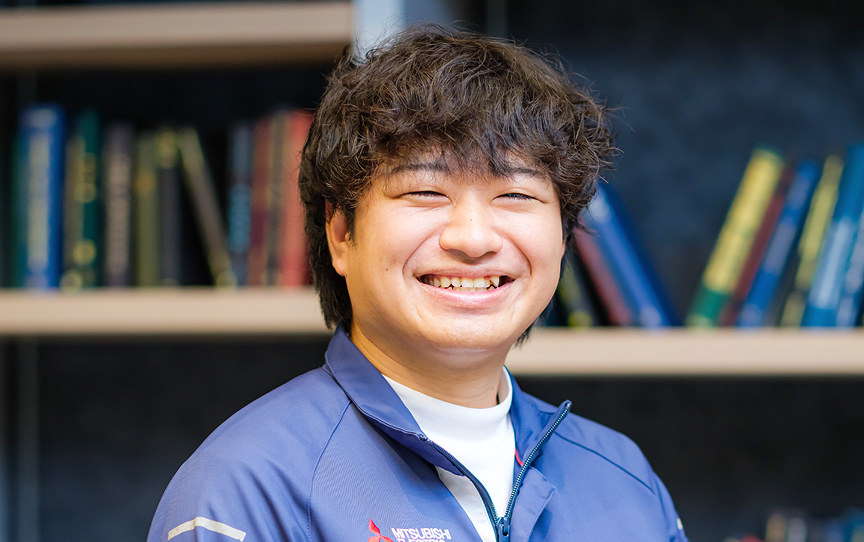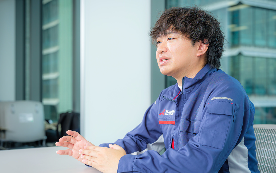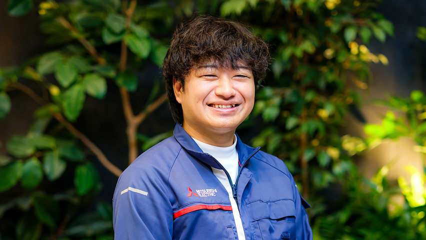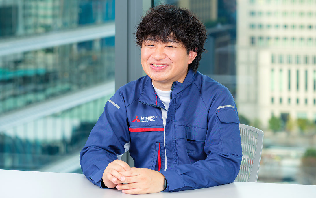 コロナ禍でエネルギー問題に関心を持ち、専門外の理系分野ながら省エネの鍵を握るパワー半導体に可能性を感じました。業界内でのシェアの高さに加え、幅広い社会インフラ事業を展開する三菱電機の多角的な基盤に魅力を感じて入社を決めました。