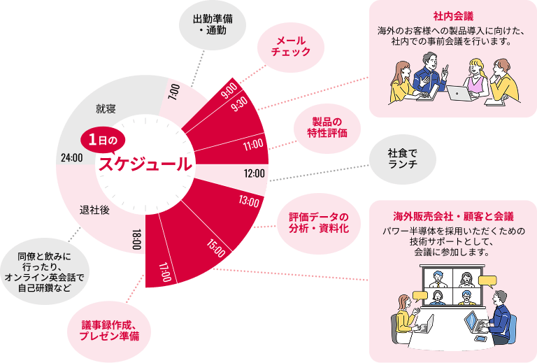 今回は、パワー半導体の技術サポートとして海外顧客を担当する若手社員を紹介。