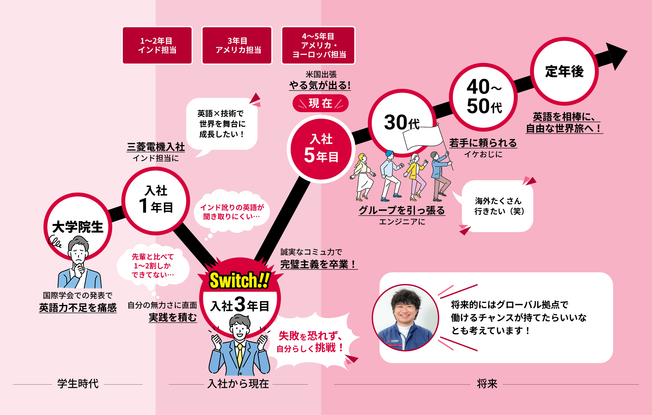 自らの「情熱」や「強み」を「仕事の武器」へスイッチし、グローバルに活躍する社員の姿を紹介する「The Switchers」。