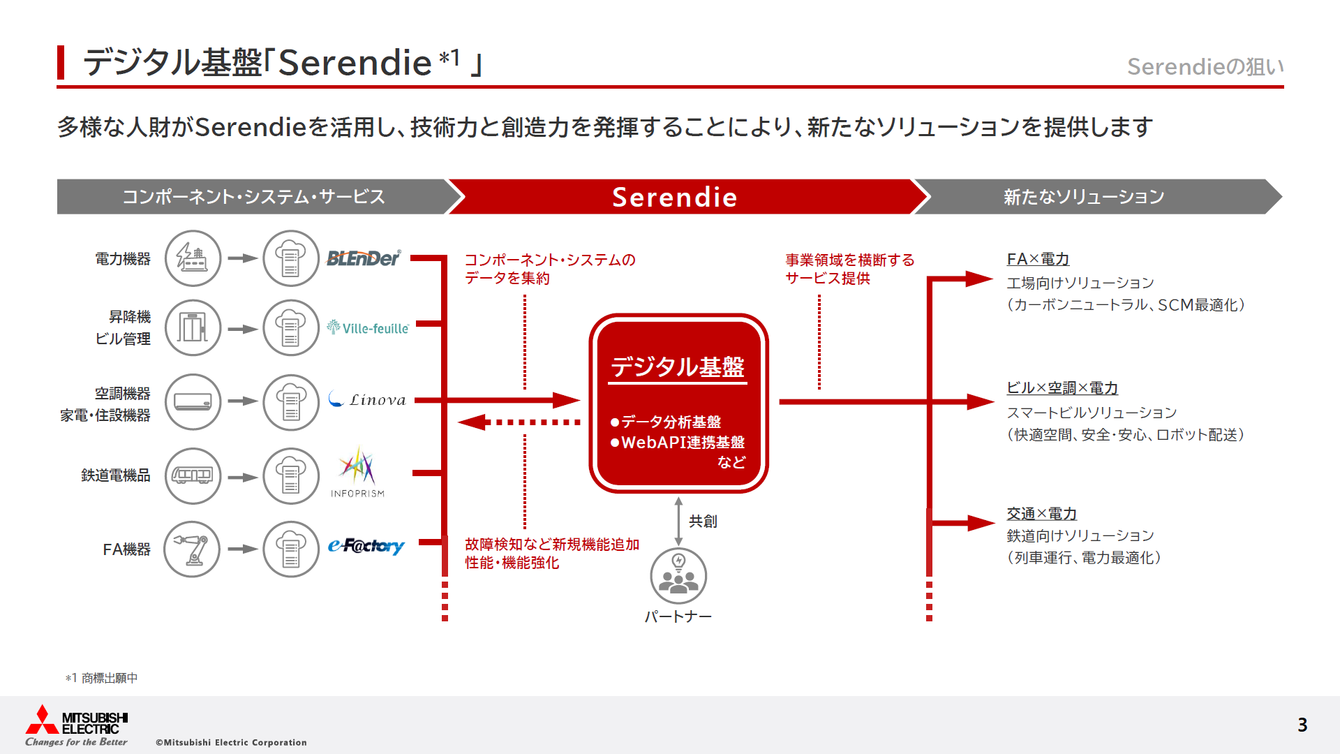 三菱電機株式会社は2024年7月11日、新たなデジタル基盤「Serendie™」の関連事業説明会を実施した。5月29日にスタートしたSerendieの取り組みについて、具体的な進捗を周知することなどが目的だ。三菱電機がSerendieに込めた想いや、その秘めた可能性とは――。説明会の様子をリポートする。