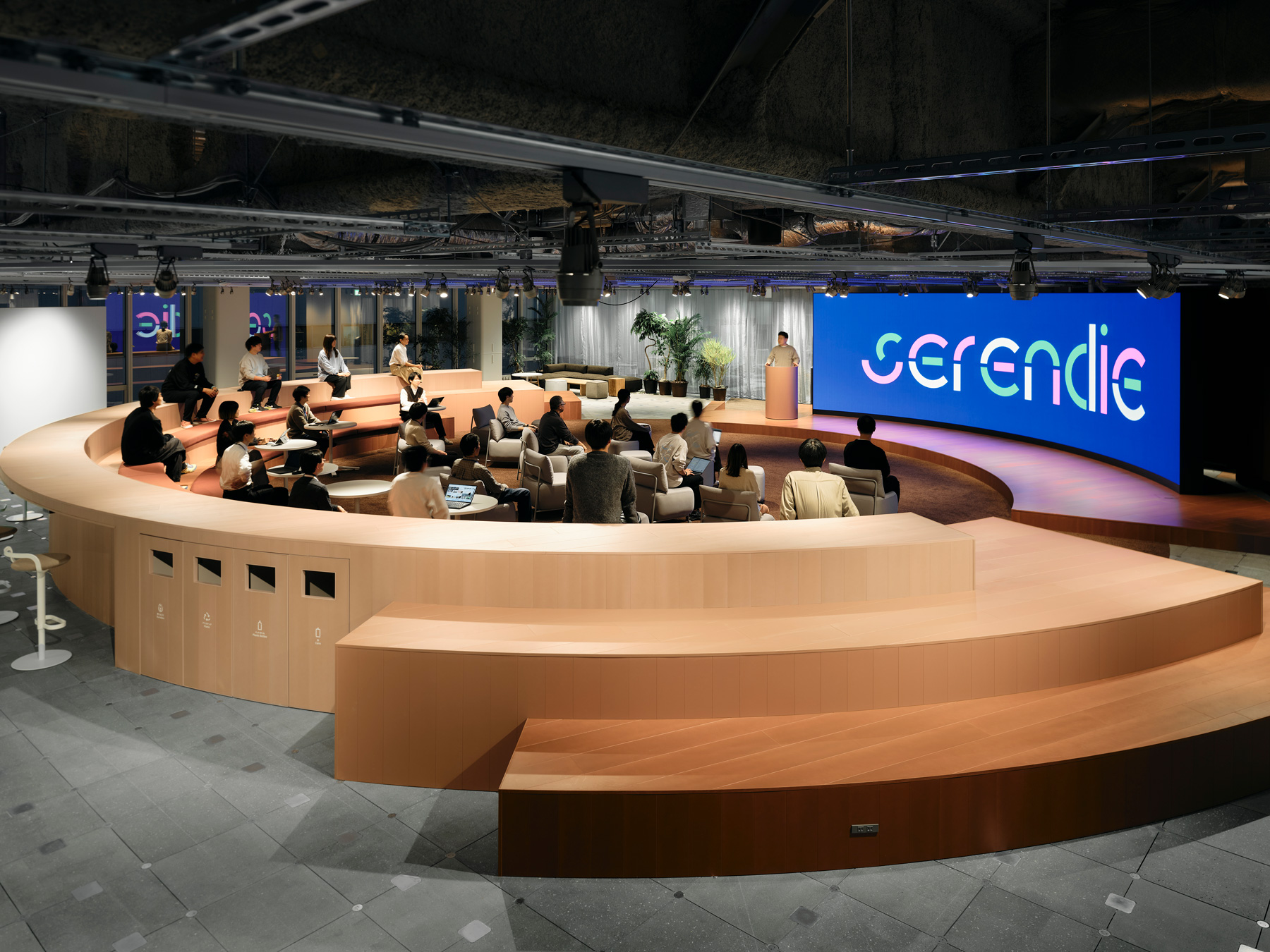 三菱電機が2025年1月17日に開設した「Serendie Street Yokohama」。デジタル基盤「Serendie®︎」を象徴する場で、社内外の多様な人々が集まれるオープンな共創空間として、新たな価値創出が期待されている。