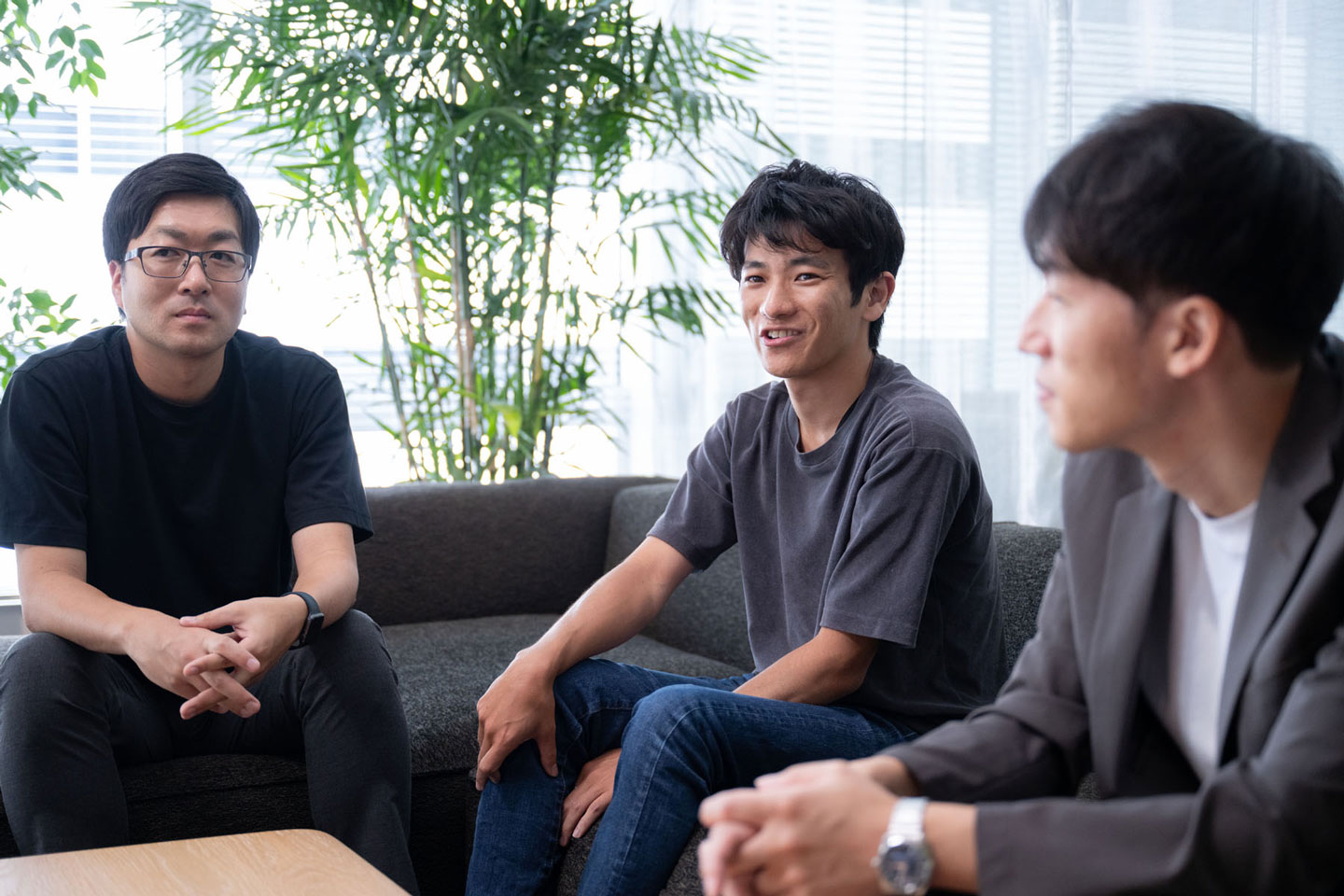 河島 堂森が「プロダクトオーナー」としてビジネスサイドのゴールを示し、奥村が「スクラムマスター」として全体を連携させる。私たちも、もともとは最初から仕様をがっちりと決めて進めるウォーターフォール型の開発が中心だったので最初は戸惑いもありましたが、チーム一体となってひとつのゴールに向かうという感覚でプロジェクトに取り組むことができました。