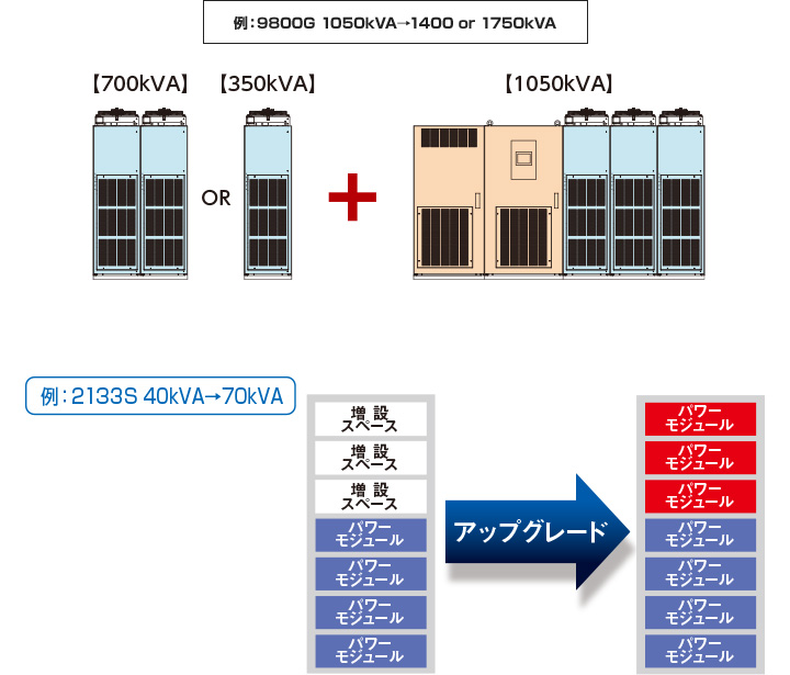 モジュール方式により、将来の負荷増加に容易に対応可能です。