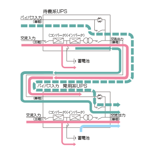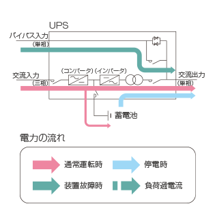 | 過渡電圧変動率 | ±5%以下(負荷急変0⇔100%にて) ±2%以下(停電または復電時) ±5%以下(出力切換(バイパス⇒インバータ)時・入出力定格時) |