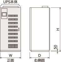 | 蓄電池 | 7.5~30kVA:UPS内蔵(10分間) 40~70kVA:別盤 |