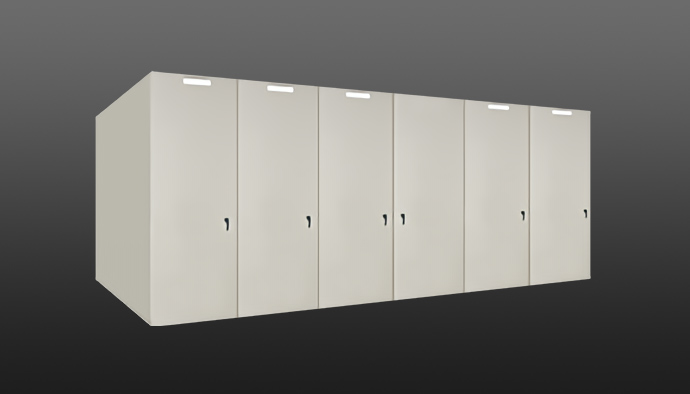 (受電ユニット、屋内タイプ、ケーブル下引込1面あたり) - 機器構成を機能モジュール化し、電気室スペースに応じて効率的なレイアウトが可能です。