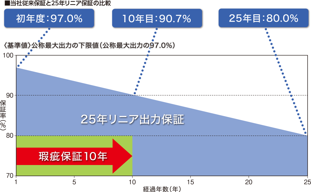 長期にわたって安定して発電して欲しいとのご要望に、25年リニア出力保証で応えます。