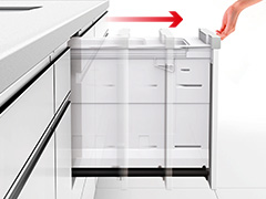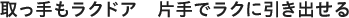 取っ手を握るだけで、本体内部の装置がドアを押し出す仕組みなので、力を入れなくてもスーッと引き出せます。