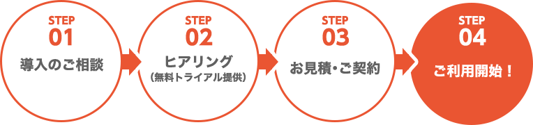 ご相談内容を拝見し、無料トライアル環境の提供、お客様の課題・お困りごとなどをヒアリングさせていただいたうえで、お客様にあった運用方法や機能等を分かり易くご説明をいたします。