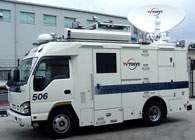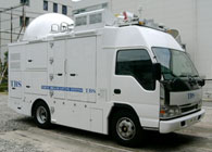 40cmφの衛星自動追尾アンテナを搭載した機動性に優れた小型車載局。AVC/H.264エンコーダーとDVB-S2変調器の組み合わせによってHDTVの伝送が可能。