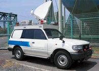 90cmφの衛星自動追尾アンテナを搭載した車載局。