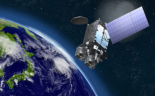 はるか上空から地上の様子を観察し、災害監視、気象予報などさまざまな事象の観測に役立っているのが地球観測衛星です。三菱電機は、地球資源衛星ふよう1号をはじめとした観測衛星の開発に携わるとともに、衛星から送られる全地球規模の観測データの処理設備や、衛星搭載用の各種センサも開発しています。