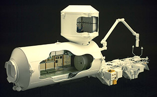 国際宇宙ステーションは世界15カ国が参加している国際プロジェクトです。日本は「きぼう」(JEM)日本実験棟と宇宙ステーション補給機「こうのとり」(HTV)などの計画に参加しています。当社はJEMの電源系とHTVの電気モジュールを担当しています。特にHTVは、ISS運用期間の定期的な輸送手段として活躍が期待されています。