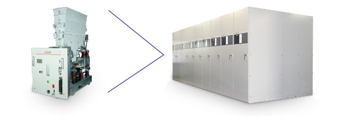 直流高速度遮断器(気中)を収容し、コンパクト化と安全性を追求。高速遮断および大容量化を実現しました。