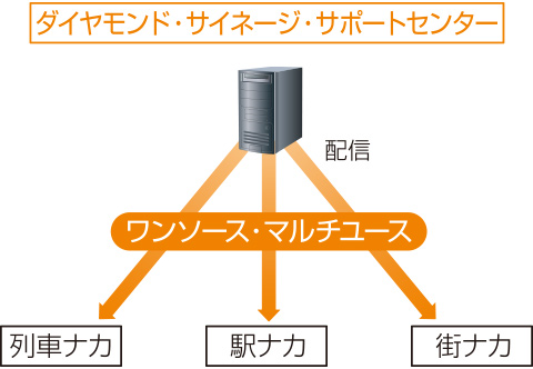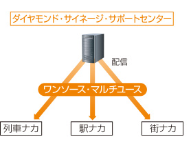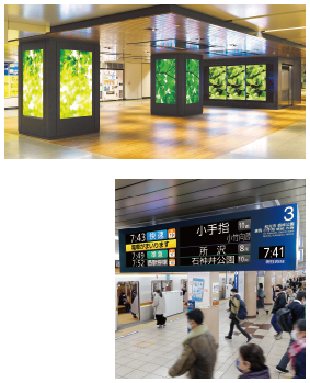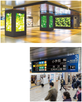 大型映像機器やデジタルサイネージ機器と、最新のコンテンツ配信システムが融合。駅をより楽しく、華やかに演出します。