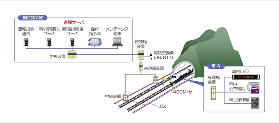 最新のデジタル無線技術の採用により、高品位な地上・車上間の情報通信インフラを実現。 列車運行管理業務の支援や利用客への迅速・確実な情報提供が可能です。