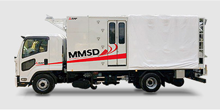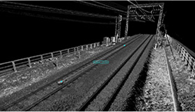 計測車両を使用した鉄道沿線設備計測・解析を実現する、三菱インフラモニタリングシステム(MMSD™※6)。