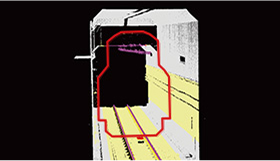 高精度三次元計測と各種センシング技術により、社会インフラ点検や設備計測の自動化・省力化・高精度化を実現します。また、計測したデータの利活用として、デジタルツイン上でデータを共有・操作するサービスであるMDMD※7を提供しています。軌陸車等を使用した走行型計測により、短時間で高精度な三次元計測が可能。三次元形状データを解析処理することで、さまざまな分野・用途に活用できます。