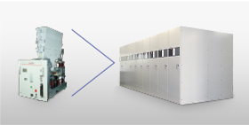 直流高速度遮断器(気中)を収容し、コンパクト化と安全性を追求。高速遮断および大容量化を実現しました。