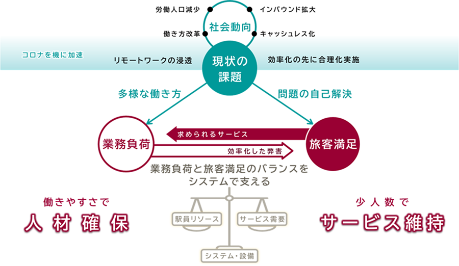 多様化する社会に合わせた駅務効率化と、旅客サービスの維持