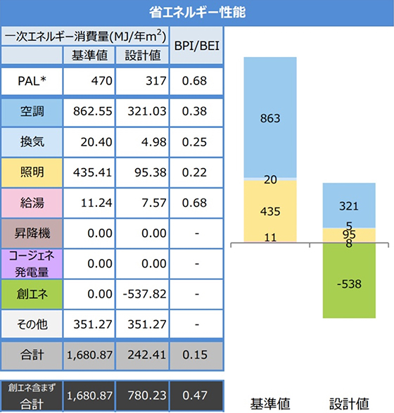 ※2 BEI(Building Energy Index):省エネ性能の評価指標。設計1次エネルギー消費量を地域や建物用途、室使用条件などにより定められた基準1次エネルギー消費量で割った値
